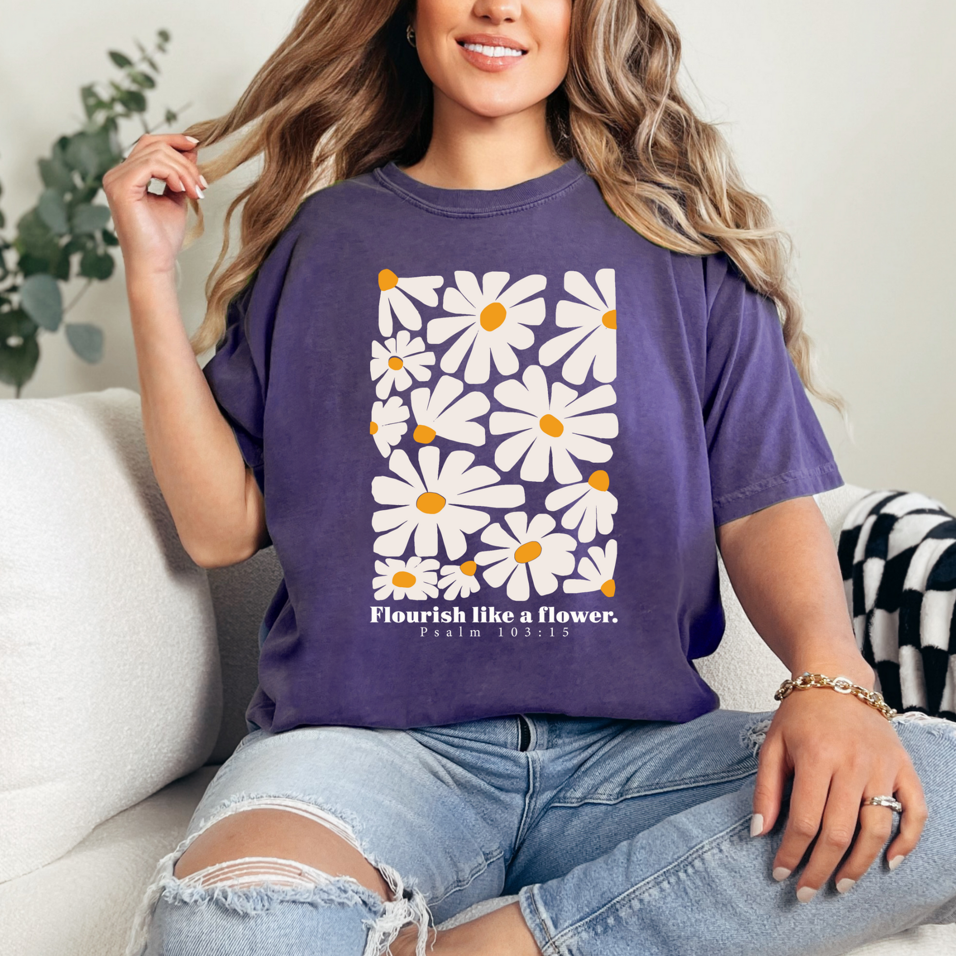 Our "Flourish Like a Flower" Christian T-Shirt is a beautiful symbol of spiritual growth and divine grace, inspired by biblical imagery of flourishing and renewal. This tee serves as a reminder to embrace your faith journey with beauty and strength, just as a flower blooms with purpose and grace. Made from soft, high-quality cotton, it’s perfect for everyday wear or as a thoughtful gift for someone celebrating their spiritual growth. Available in a variety of sizes and colors, this shirt is a stylish and uplifting way to express and share the message of flourishing in God's love. Wear it and let your faith blossom!