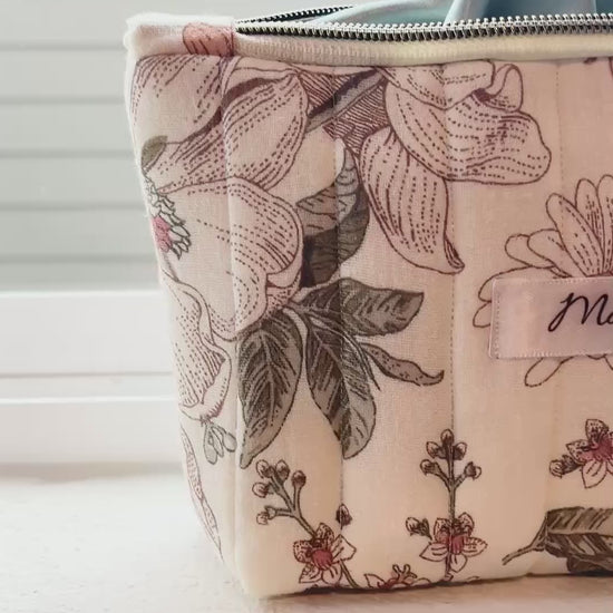Zipper Cosmetic Pouch | Travel Toiletry Bag | Handmade Gift for Her | Floral Makeup Organizer Bag