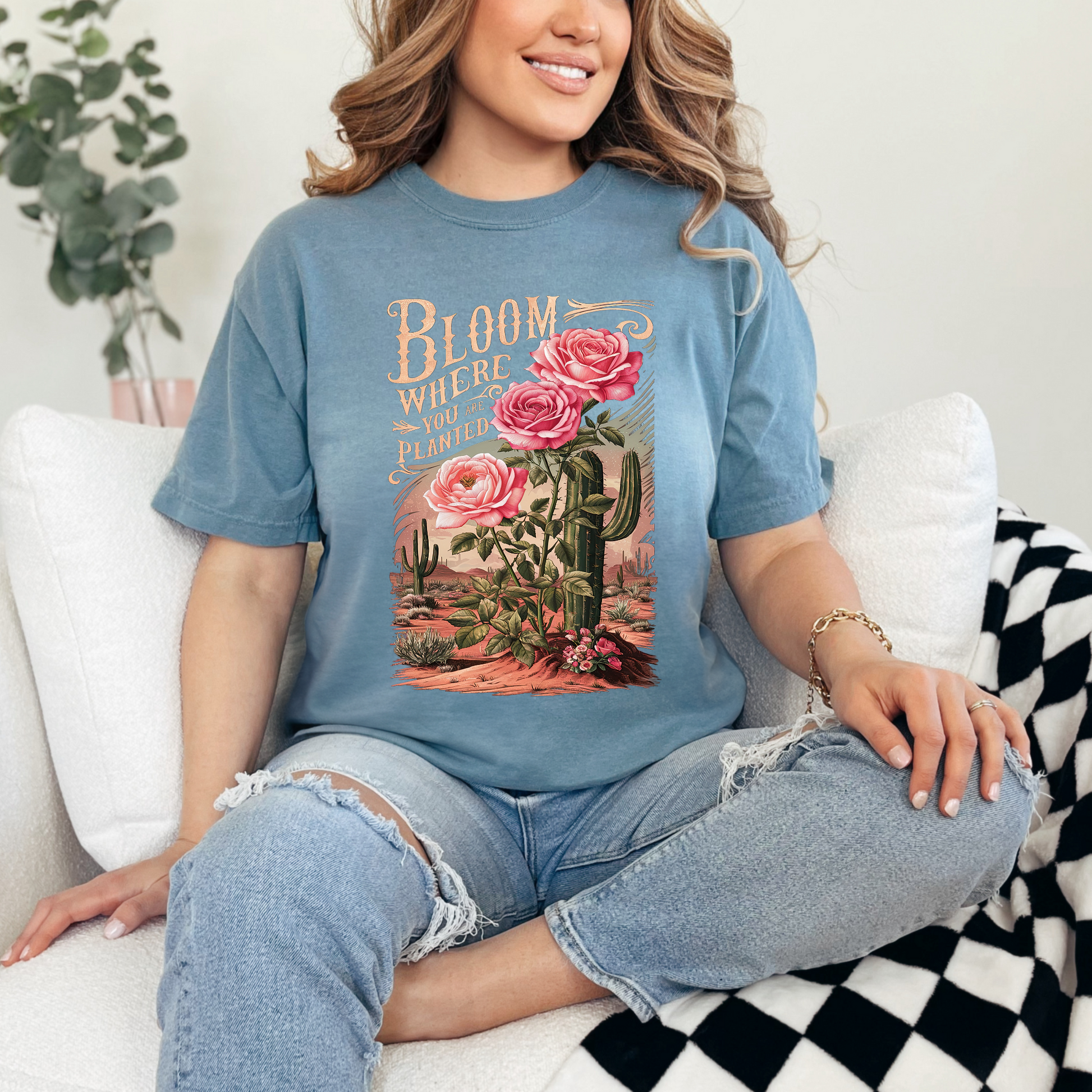 Our "Bloom Where You Are Planted" Christian T-Shirt is a meaningful reminder to flourish and thrive in every season of life, inspired by the biblical principle of embracing where God has placed you. This tee symbolizes growth and faithfulness, encouraging you to make the most of your current circumstances with grace and purpose. Made from soft, high-quality cotton, it’s perfect for everyday wear or as an uplifting gift for someone in their faith journey. Available in various sizes and colors, this shirt is a stylish and inspirational way to express the message of thriving where God has planted you.