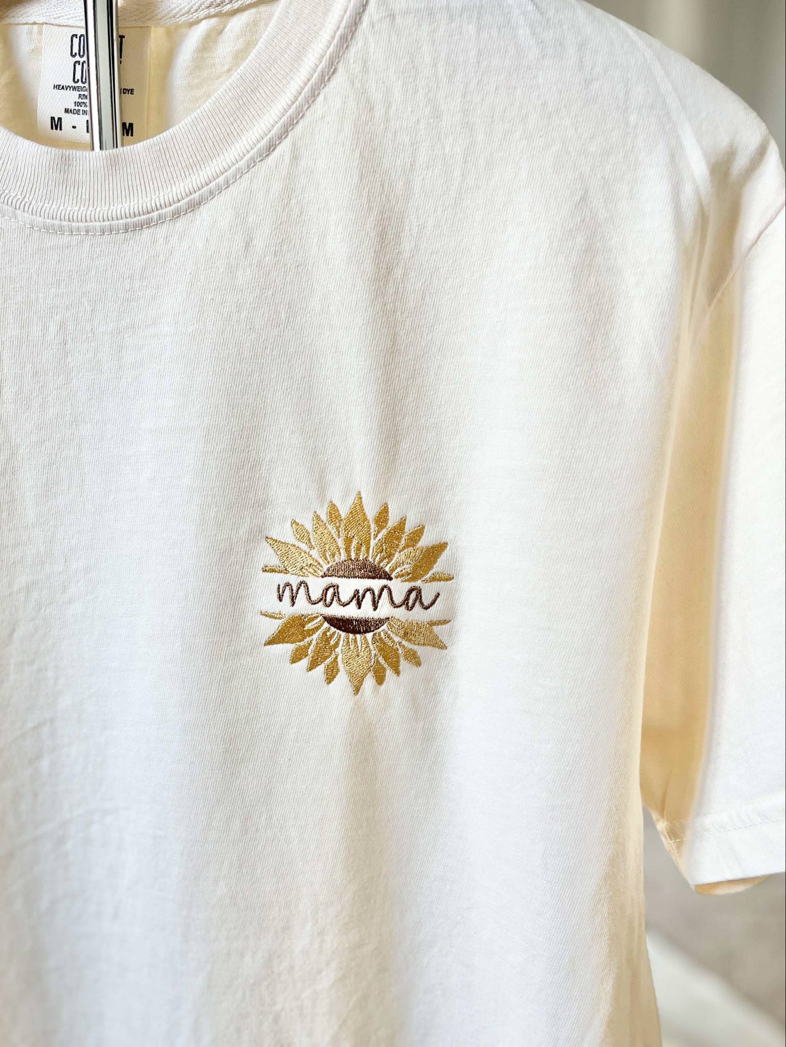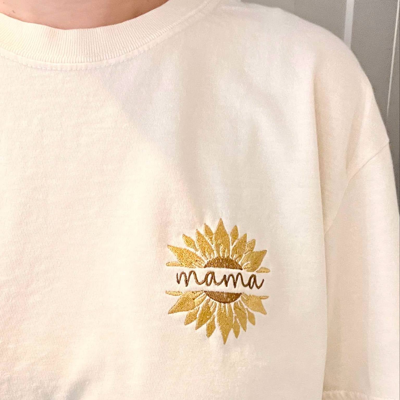 Mama Sunflower Embroidered Shirt Comfort Colors Ivory Tee | Mother’s Day Gift | Floral Mom Shirt | Boho Mama Shirt | Mom Gift