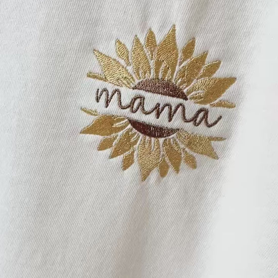 Our Mama Sunflower Embroidered T-Shirt is the perfect blend of comfort, quality, and heartfelt design. Made on a 100% cotton Comfort Colors tee in a soft ivory shade, this shirt features a delicate sunflower embroidery with the word “Mama” – a beautiful symbol of warmth and strength.